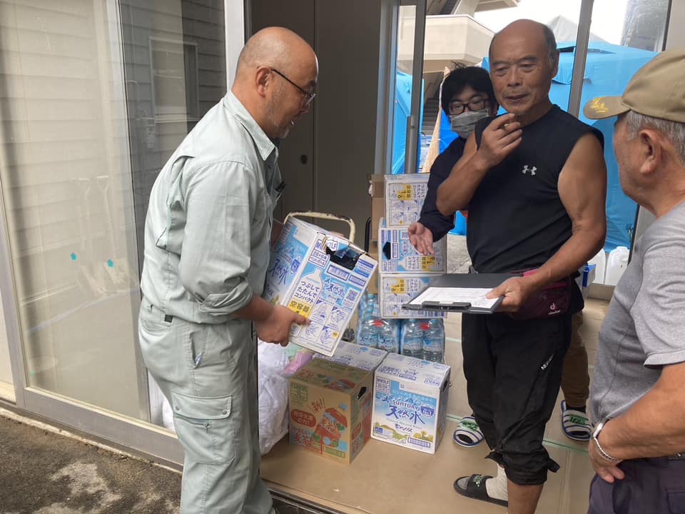 昨日まで孤立していた集落・避難所まで取りに行けない在宅避難の高齢者(土砂が敷地内まで来たが家は無事、停電・断水)へ、住民の方が届けてくださいます。ありがとうございます。