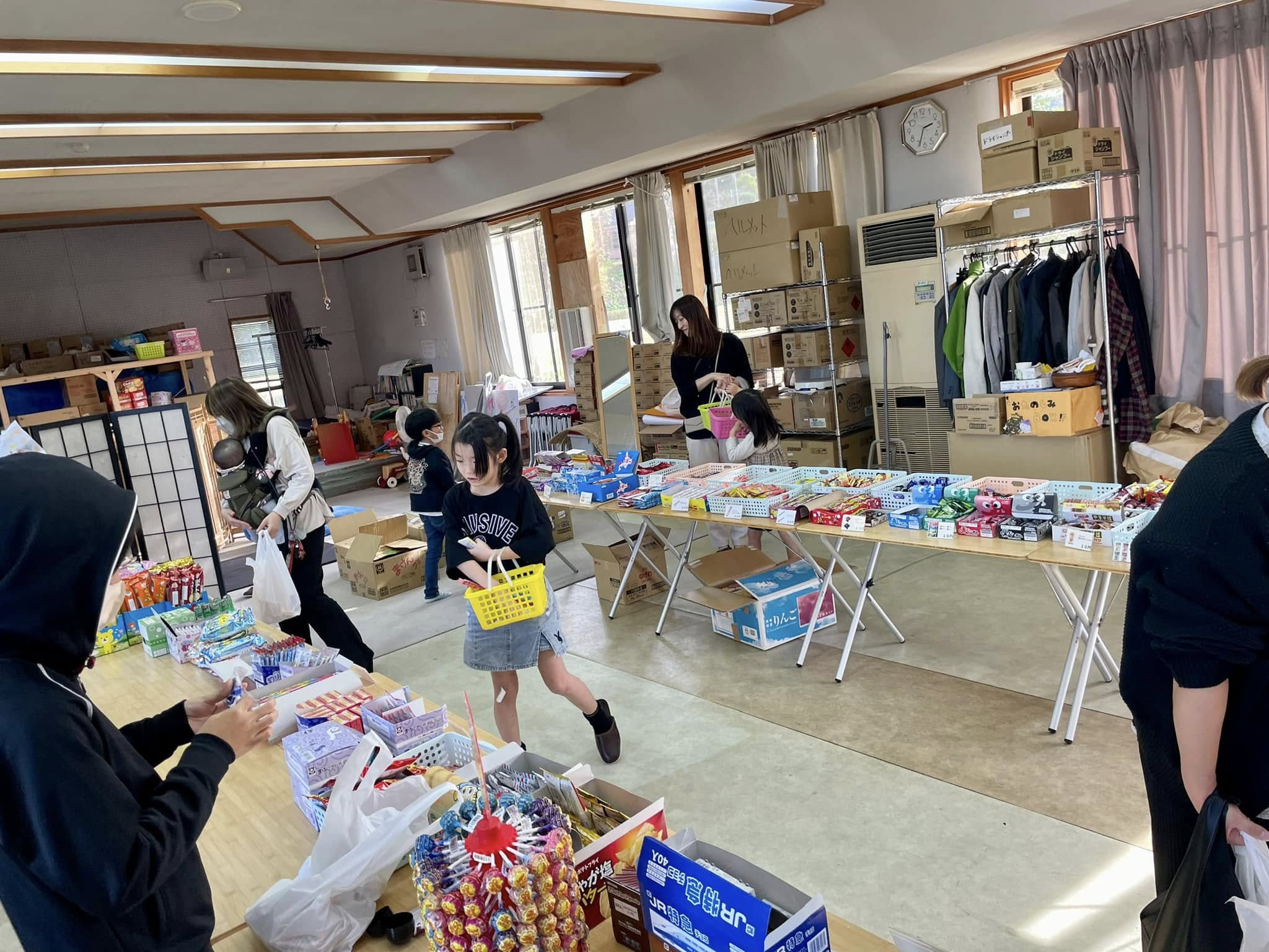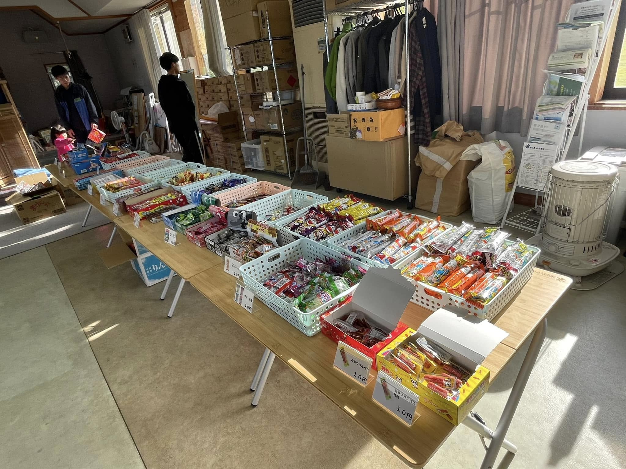 駄菓子の保管から、場所の提供、設営・撤去までお手伝いくださった被災地NGO協働センターの皆様、ボランティアとして搬入からレジ係まで手伝ってくれた七尾のたむちゃん、能登観光アンバサダーの木戸さん、ありがとうございました!