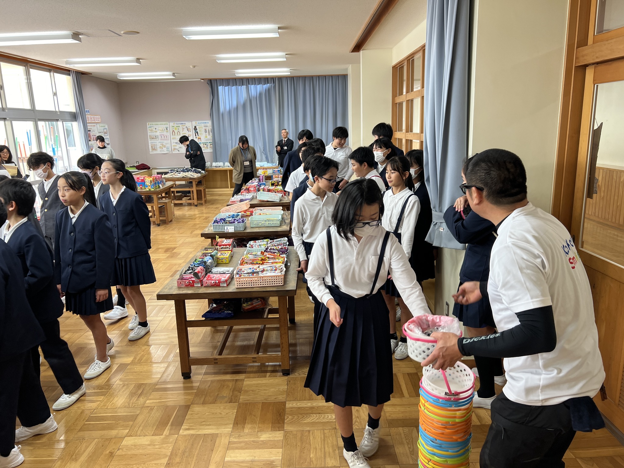 終了後、「この駄菓子は、輪島や能登の子どもたちを心配している全国の皆さんが、子どもたちに届けてくださいと寄付してくれたお金で買った駄菓子です。直接奥能登に来られなくても、皆さんを思っている人がたくさんいることを、心の片隅に留めておいてください。」と伝えました。