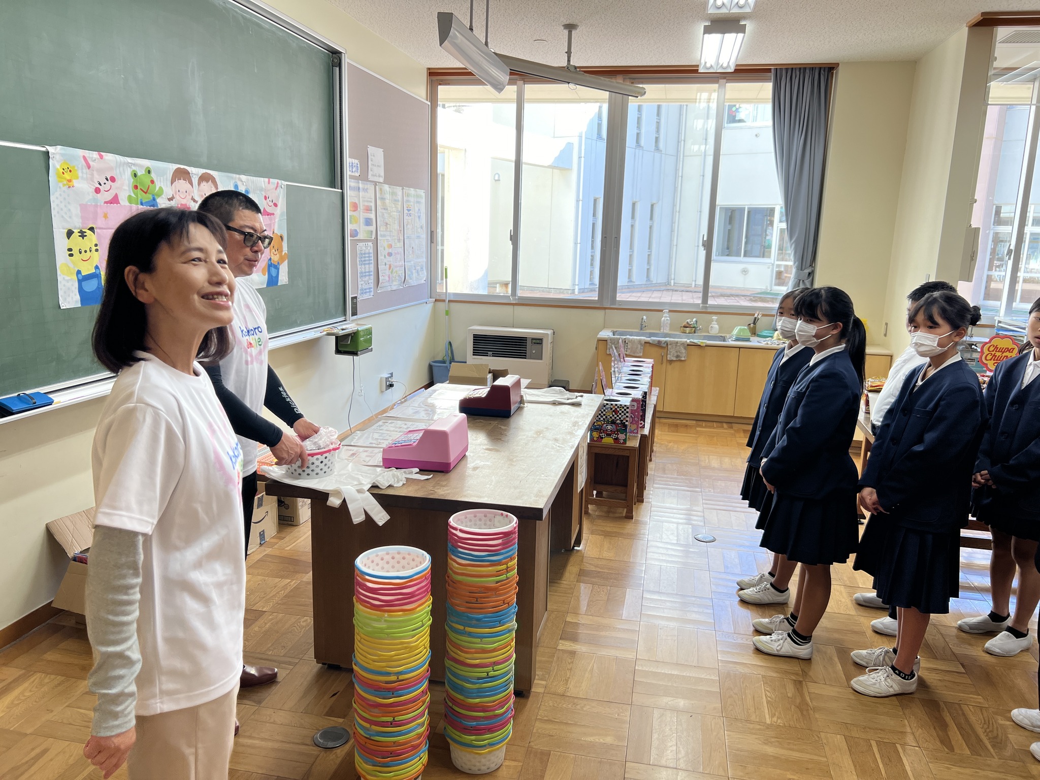 元日の地震で長期間孤立し、更に9月の豪雨では甚大な被害を受け小学校が被災した輪島市立町野小学校と同校が間借りしている能登町立柳田小学校、2校合同での開催。5・6年生35名と教職員20名を対象に実施しました。(1年生〜4年生は当日遠足の為、事前におやつの詰め合わせをお届け済み)